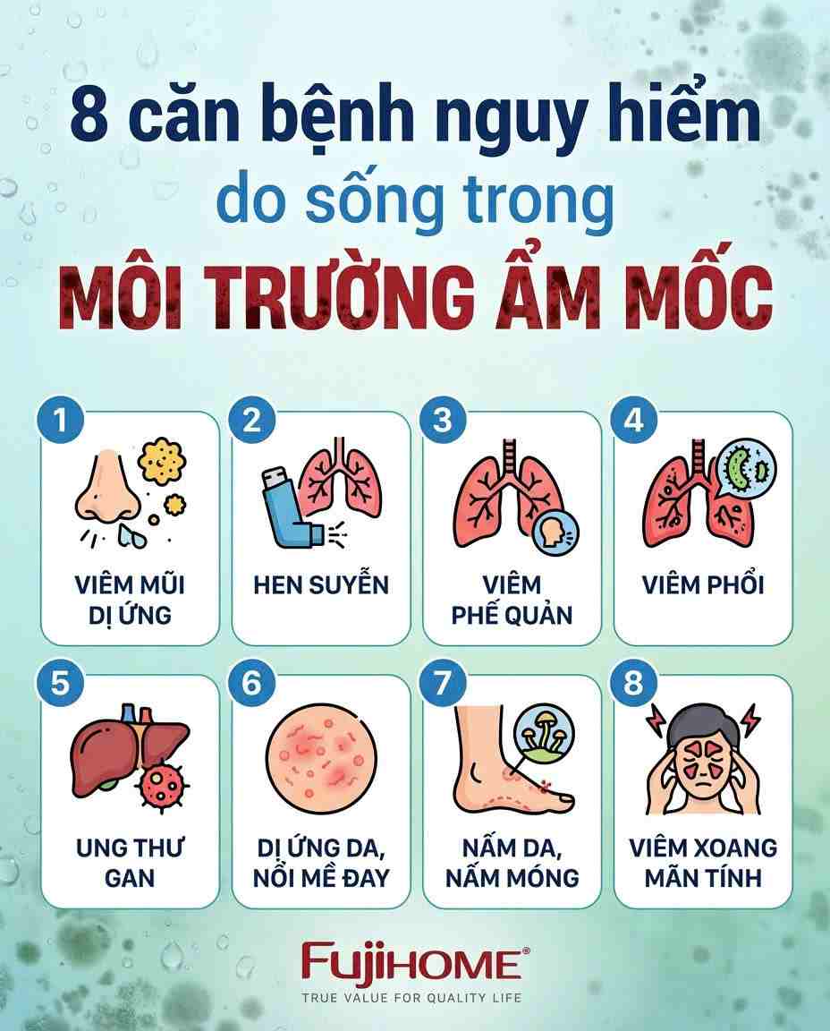 Theo Tổ chức Y tế Thế giới (WHO), có tới 40% loại nấm mốc xung quanh chúng ta có khả năng sản sinh độc tố gây bệnh nghiêm trọng cho con người. Sống trong môi trường ẩm mốc kéo dài không chỉ gây khó chịu mà còn là "kẻ sát nhân thầm lặng" đối với sức khỏe.