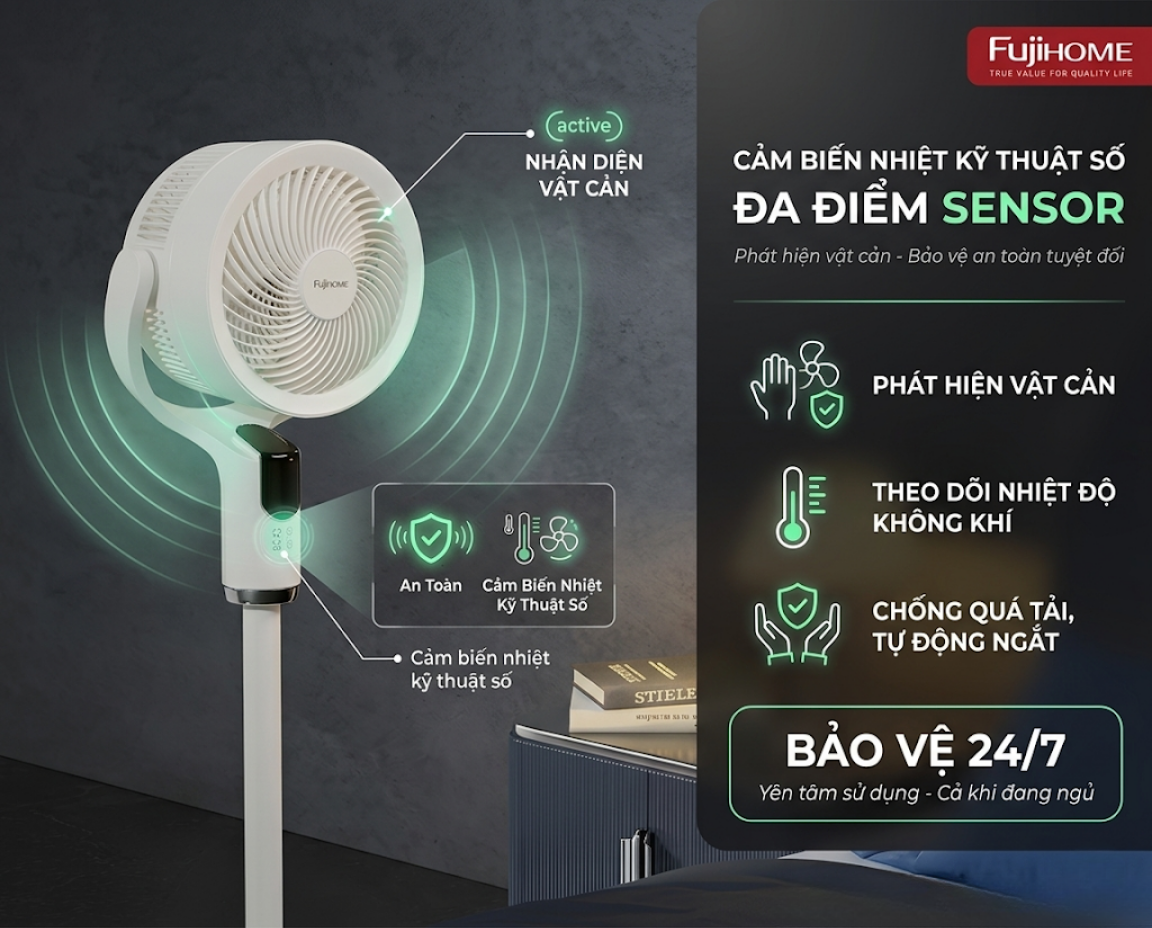 Với Fujihome, sự thông minh luôn đi đôi với sự an toàn. Việc trang bị quạt điều khiển giọng nói tích hợp động cơ BLDC không chỉ nâng tầm đẳng cấp không gian sống mà còn là bước chuẩn bị chu đáo để bảo vệ ngôi nhà trước các nguy cơ cháy nổ tiềm ẩn. Hãy để Fujihome mang lại cho bạn làn gió mát lành cùng sự an tâm tuyệt đối.