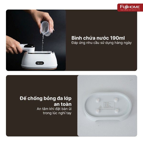 Bàn là hơi nước cầm tay gấp gọn Fujihome sử dụng an toàn cho đa dạng chất liệu: