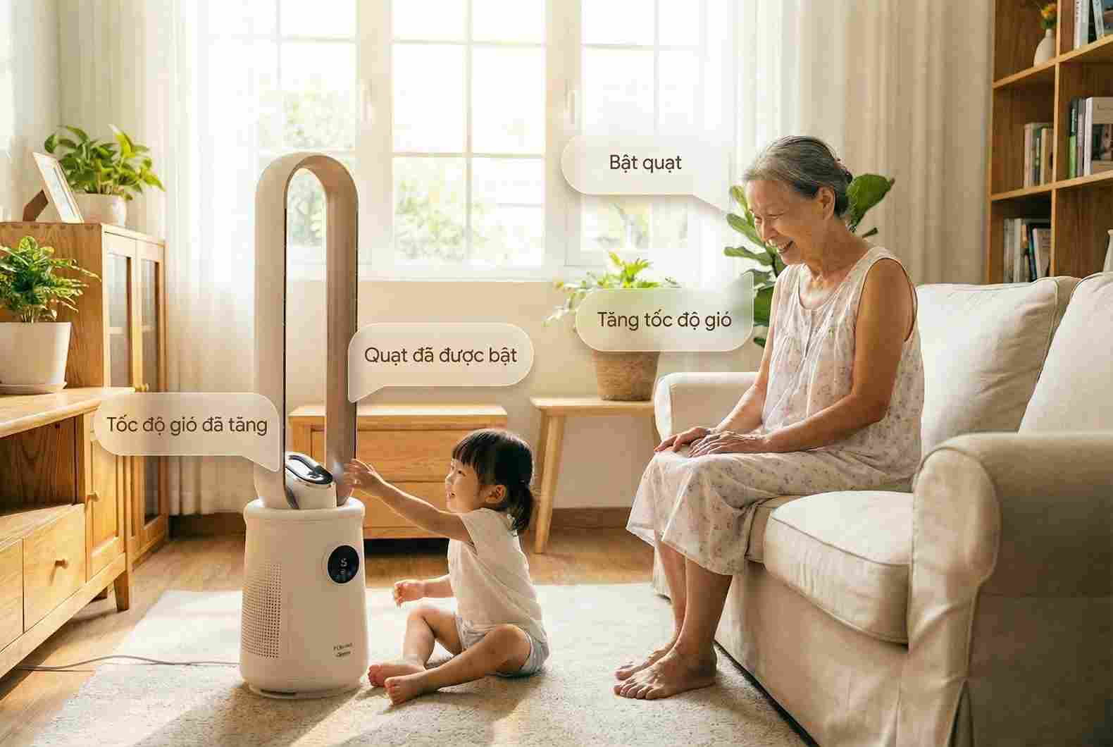 Thực hiện: Nhẹ nhàng lau bề mặt thân quạt, chân đế và khu vực bảng điều khiển cảm ứng.