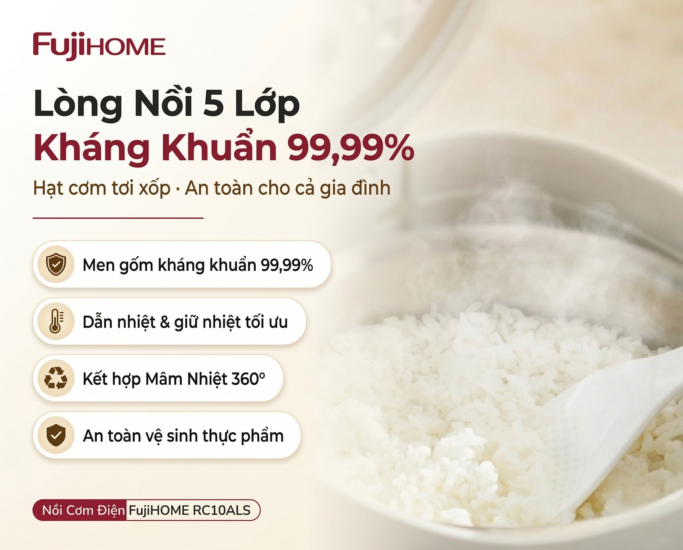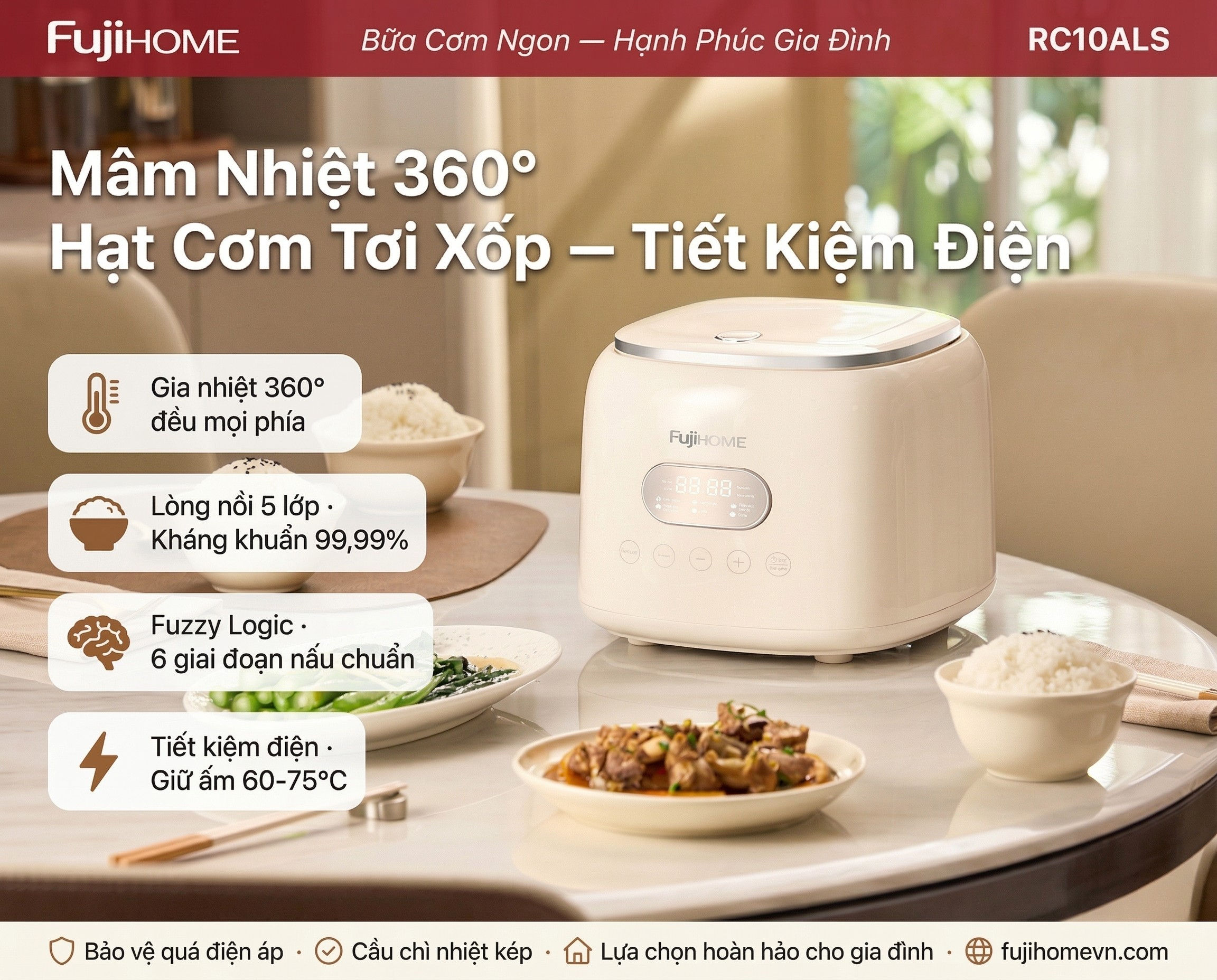 Mâm Nhiệt 360°: Bí Mật Đằng Sau Hạt Cơm Tơi Xốp, Tiết Kiệm Điện Của Nồi Cơm Điện Fujihome