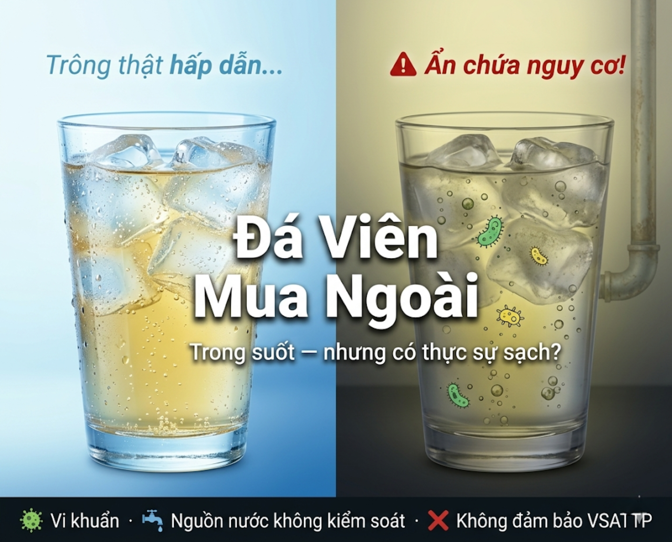 Tuy nhiên, ẩn sau vẻ ngoài trong suốt, mát lạnh của những viên đá mua ngoài là một mối nguy tiềm tàng mà ít người tiêu dùng nhận thức được: nguy cơ về sức khỏe và vệ sinh an toàn thực phẩm.