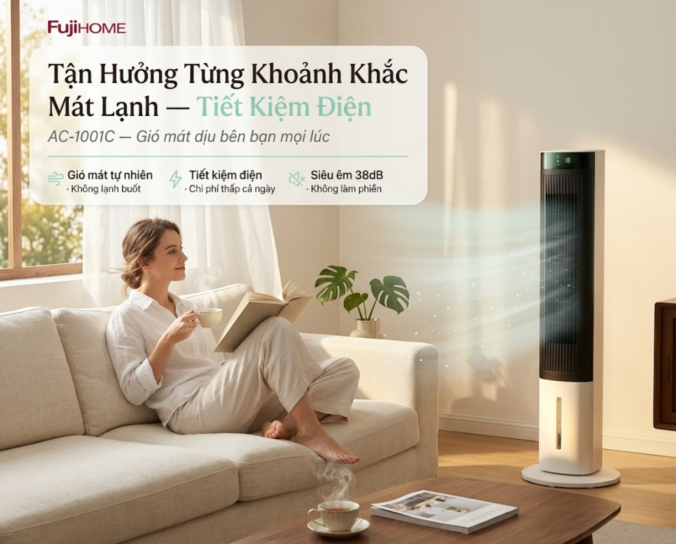 Đánh Giá Chuyên Sâu Fujihome AC-1001C: Vì Sao Quạt Tháp Hơi Nước Siêu Êm Lại Là "Chân Ái" Cho Gia Đình Hiện Đại?