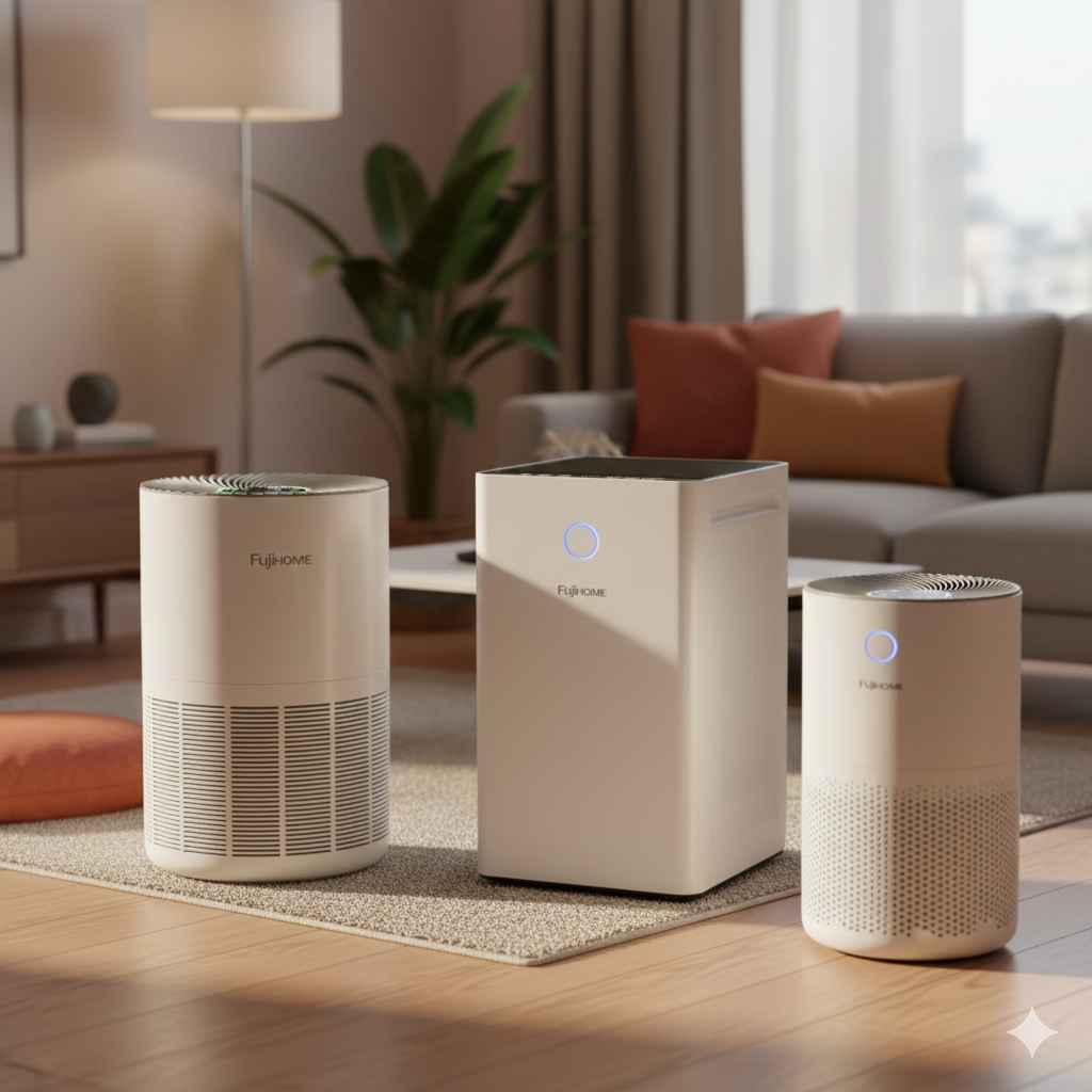 - Fujihome AP5Pro: Dòng cao cấp nhất tích hợp hệ thống khử khuẩn đa tầng (HEPA + UV + Ionizer). Đặc biệt tiết kiệm điện, phù hợp cho gia đình có trẻ nhỏ, người già hoặc người nhạy cảm với vi khuẩn.