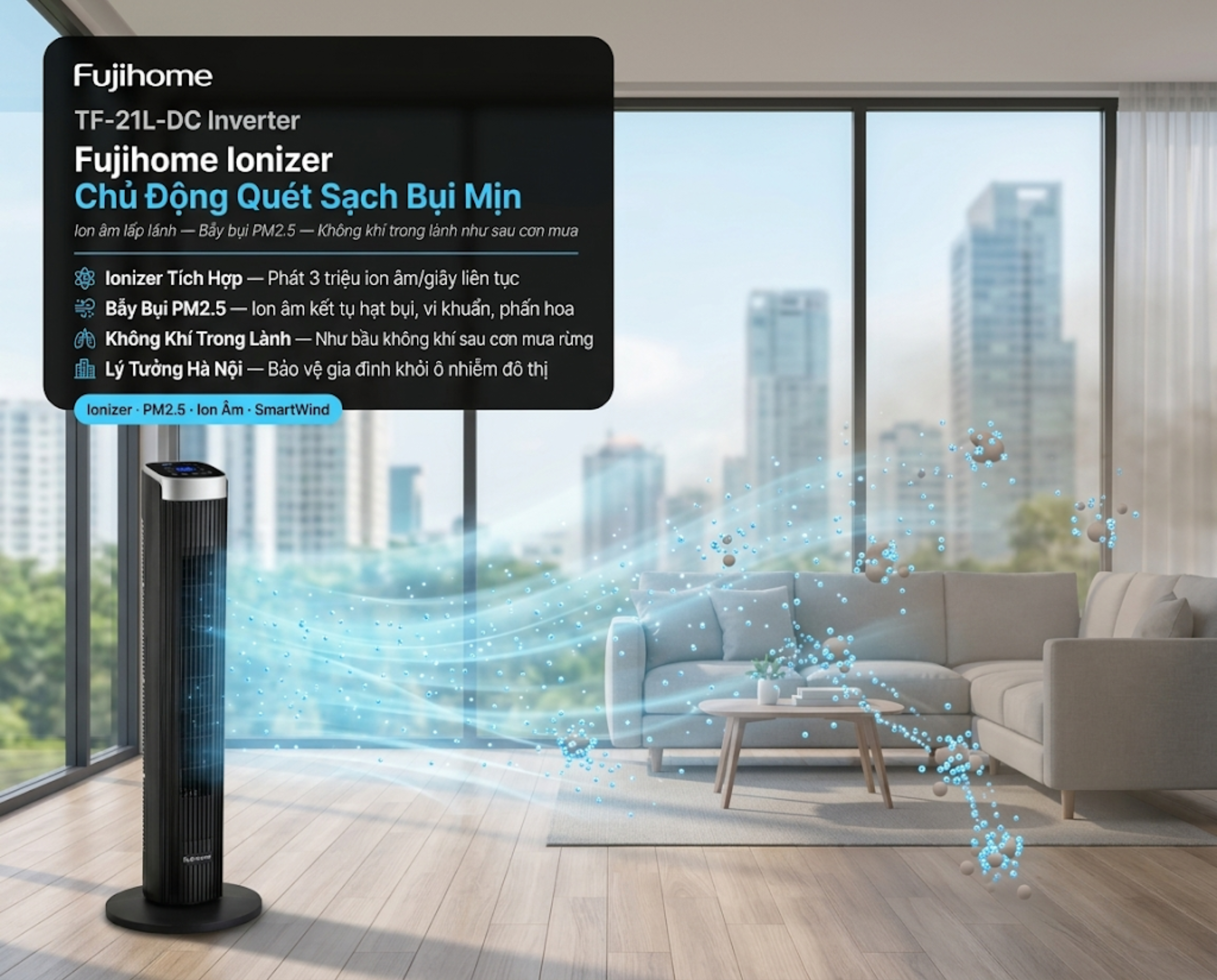 Trong bối cảnh chất lượng không khí đô thị ngày càng biến động, ngôi nhà không chỉ là nơi để về, mà còn phải là một "pháo đài" bảo vệ sức khỏe. Fujihome đã chính thức gia nhập cuộc đua bảo vệ hệ hô hấp bằng hệ sinh thái quạt tháp thông minh thế hệ mới, nổi bật là model TF-21HL-DC Inverter. Không chỉ đơn thuần là thiết bị làm mát, đây là giải pháp tích hợp công nghệ Ionizer – một "vũ khí bí mật" giúp chủ động giảm thiểu bụi mịn và mang lại bầu không khí tinh khiết như giữa rừng nguyên sinh.