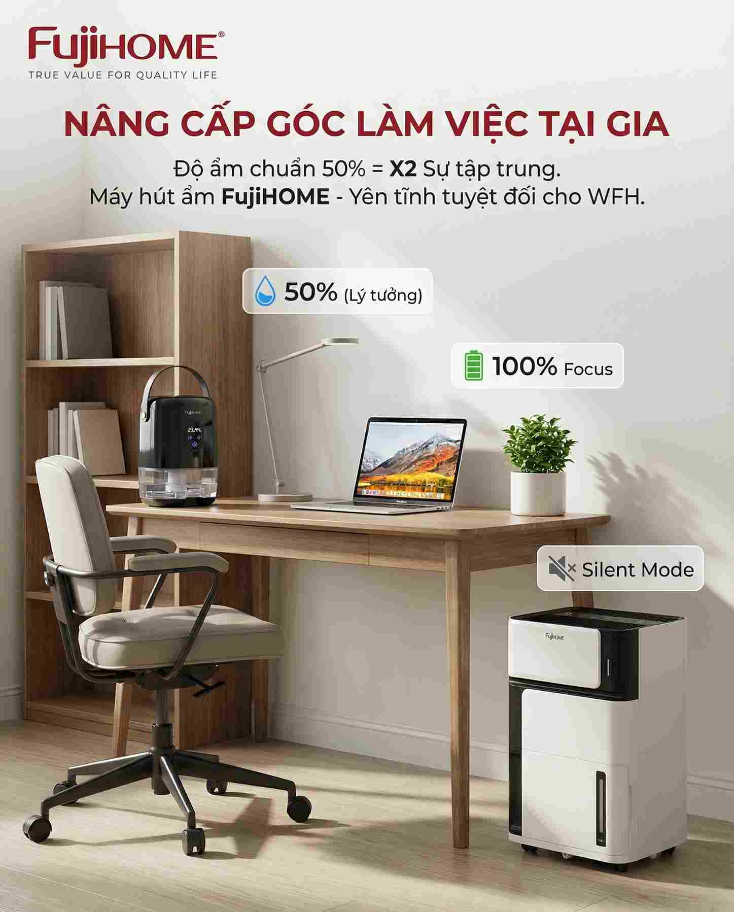 Thấu hiểu nhu cầu của người làm văn phòng và các freelancer, FujiHOME mang đến hai dòng máy hút ẩm chuyên dụng, bảo vệ sức khỏe và thiết bị điện tử của bạn: