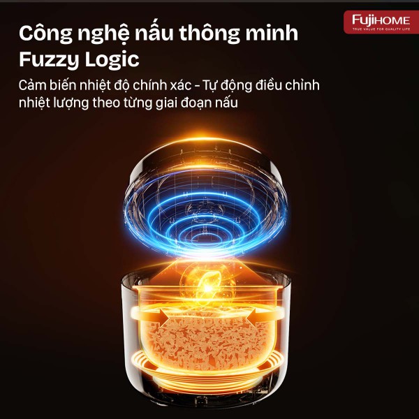 Công nghệ Fuzzy Logic tự động điều chỉnh nhiệt tối ưu giúp cơm chín đều, giữ trọn vị thơm dẻo. Hệ thống cảm biến nhiệt kết hợp Fuzzy Logic giúp kiểm soát nhiệt chính xác.