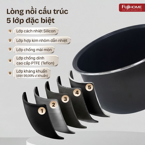 Lòng nồi cấu trúc 5 lớp – Kháng khuẩn – Bền chắc – Giữ nhiệt vượt trội