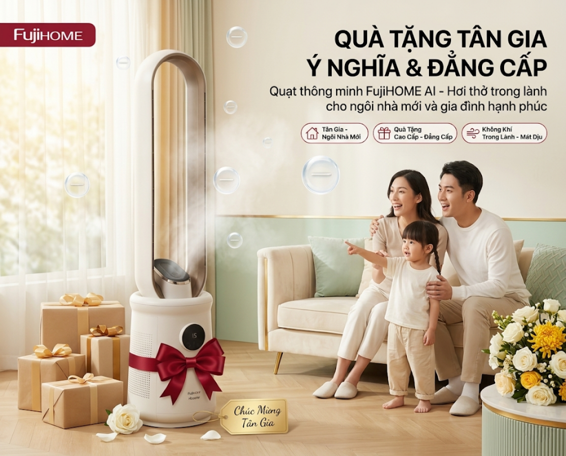 Tân gia là cột mốc quan trọng đánh dấu một khởi đầu mới đầy thịnh vượng. Trong xu hướng "Smart Living" năm 2026, một món quà tân gia xứng tầm không chỉ dừng lại ở tính thẩm mỹ mà phải mang giá trị công nghệ vượt trội, chăm sóc sức khỏe và nâng tầm đẳng cấp không gian sống. Dòng quạt thông minh điều khiển giọng nói Fujihome (CFR01PRO, CFR04, BF15) chính là sự lựa chọn tinh tế nhất, thay lời chúc "An khang – Thịnh vượng" gửi đến gia chủ.