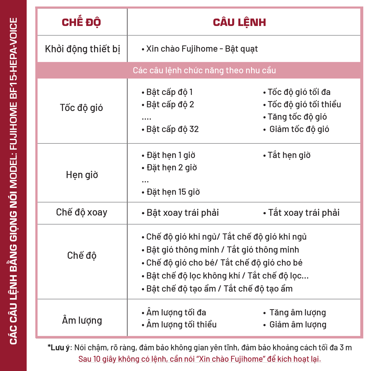 Fujihome không cam kết 100% độ chính xác cho tính năng giọng nói trong mọi điều kiện sử dụng.
