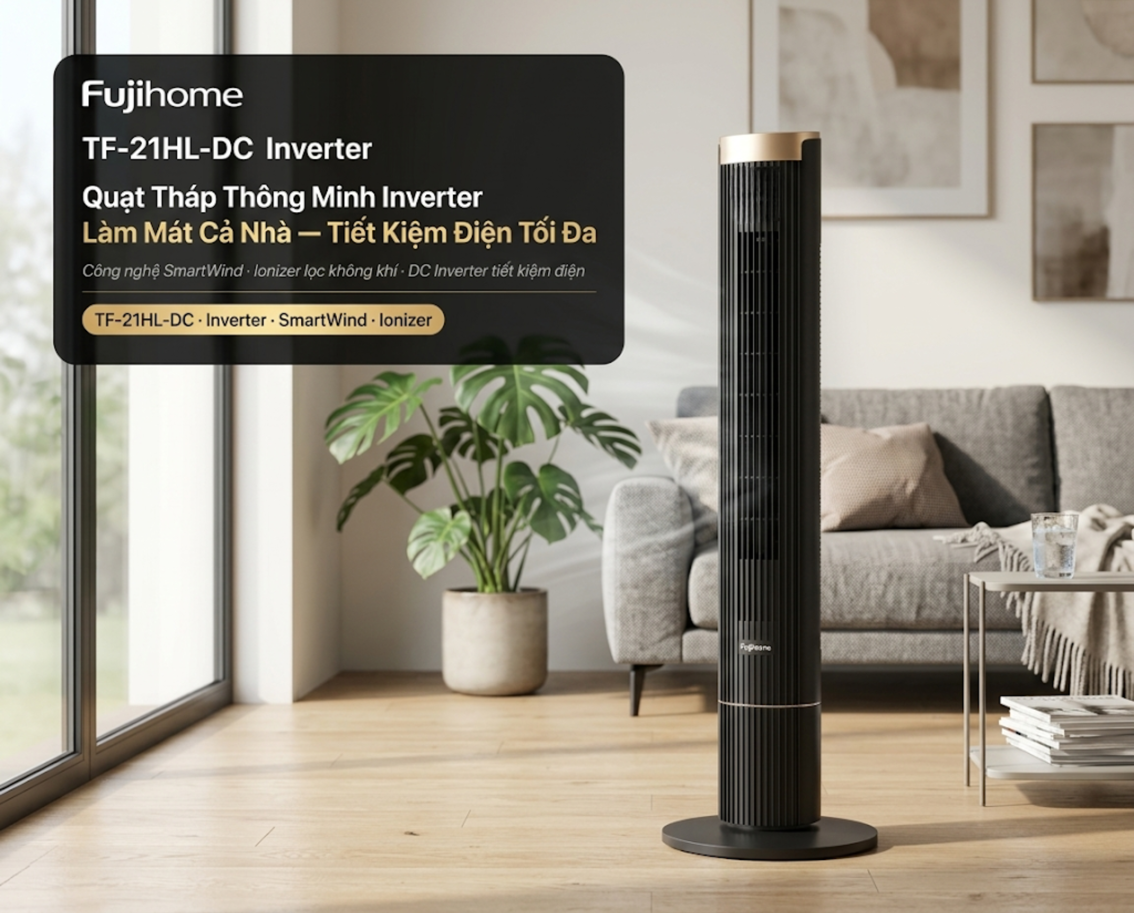 Quạt tháp thông minh Fujihome TF-21HL-DC Inverter tích hợp công nghệ SmartWind và Ionizer.
