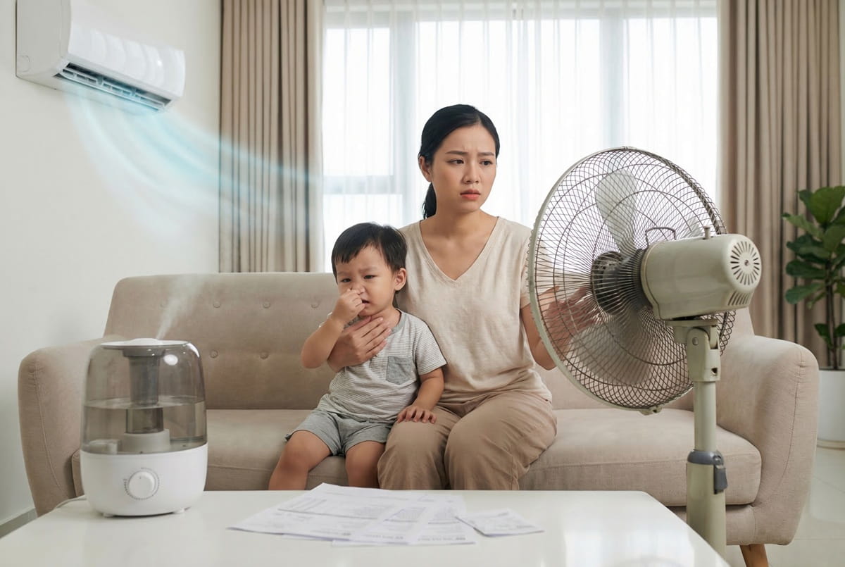 Mùa hè cũng là lúc các mẹ bỉm "đau đầu" với bài toán làm mát. Bật điều hòa 24/24 thì lo con khô mũi, viêm họng, chưa kể hóa đơn tiền điện cao ngất ngưởng. Dùng quạt cánh truyền thống thì lại ồn ào, bụi bẩn, cứ nơm nớp lo con nhỏ hiếu động thò tay vào cánh quạt. Chọn cách nào cũng thấy chưa ổn, và đó là vòng lặp quen thuộc của hàng triệu gia đình Việt mỗi khi hè về.