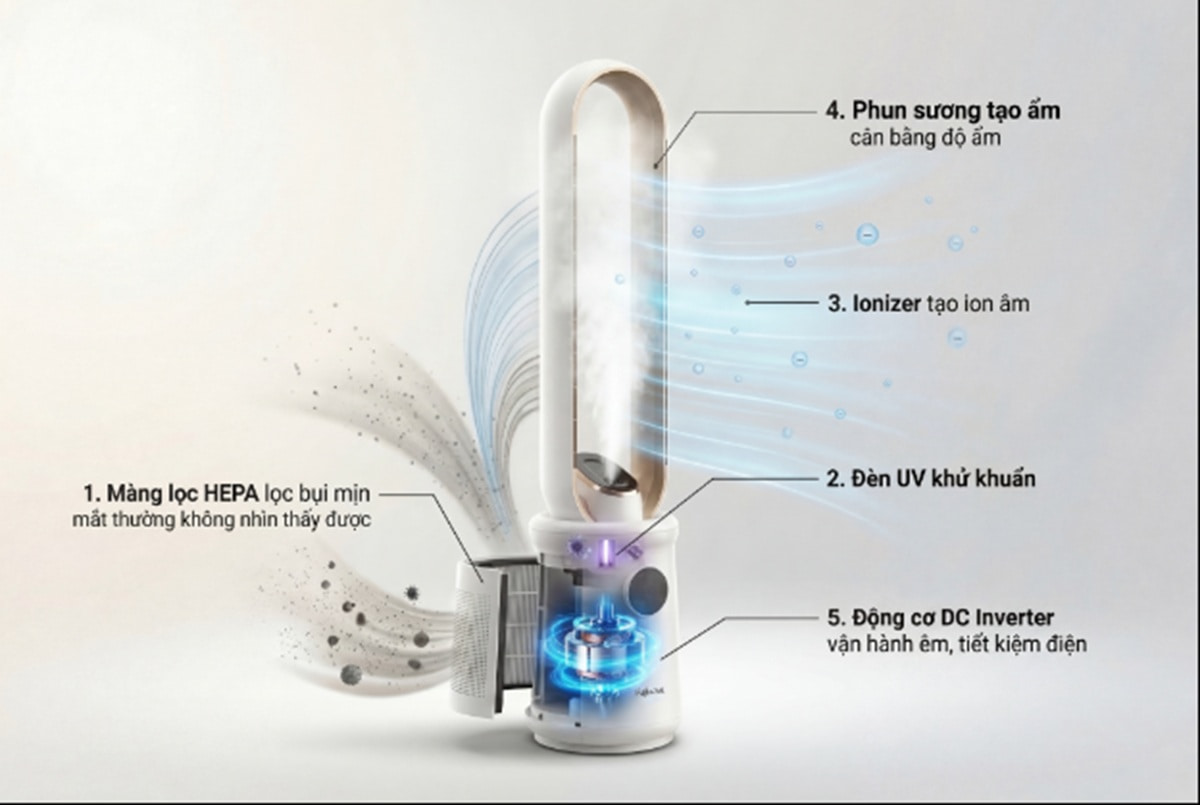 Phòng có con nhỏ, lo không khí bụi khuẩn: Quạt không cánh BF15-HEPA-VOICE