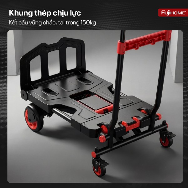 Xe đẩy đa năng 2 in 1 Fujihome FTM-150 là giải pháp vận chuyển hàng hóa linh hoạt, tiện lợi và bền bỉ cho cả nhu cầu dân dụng lẫn thương mại. Thiết kế chuyển đổi thông minh, khung thép chịu lực chắc chắn cùng bánh xe vận hành êm ái giúp sản phẩm đáp ứng hiệu quả nhiều kịch bản sử dụng, từ không gian nhỏ hẹp đến môi trường vận chuyển hàng hóa chuyên nghiệp.